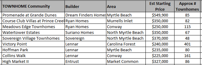 Some of the exciting new townhome communities ramping up in 2025 in the Myrtle Beach area are as follows: