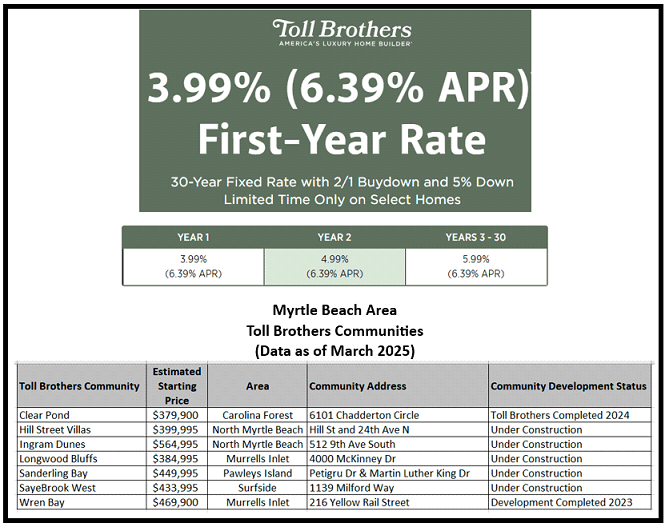 In the Myrtle Beach area, Toll Brothers is actively building in the following new home communities: