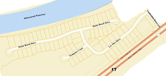 Inside the Lauderdale Bay Estates community, Dania Beach Drive runs parallel to the Intracoastal Waterway. Mediterranean style homes on one side Dania Beach Drive all have rear yards directly alongside the Intracoastal Waterway! Every two waterfront lots can share a dock. Docks can have up to two boat lifts.